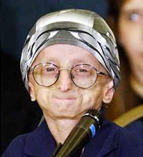 با اینکه صورت این دختر علائم سالخوردگی به خود گرفته اما موها و بدن جوانی دارد.